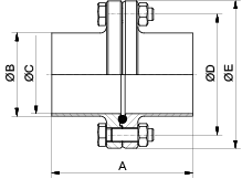 | DN | A | B | C | D | E | kg |