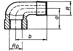 90°, Innen-/Außengewinde, stirnseitige Dichtfläche, Material 1.4408 aisi 316C, Gewinde zylindrisch ISO 228